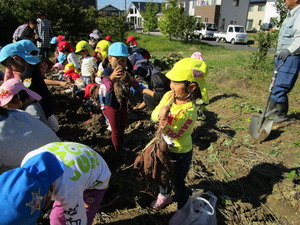 「 とものもり 」園児が さつまいも の植え付け
